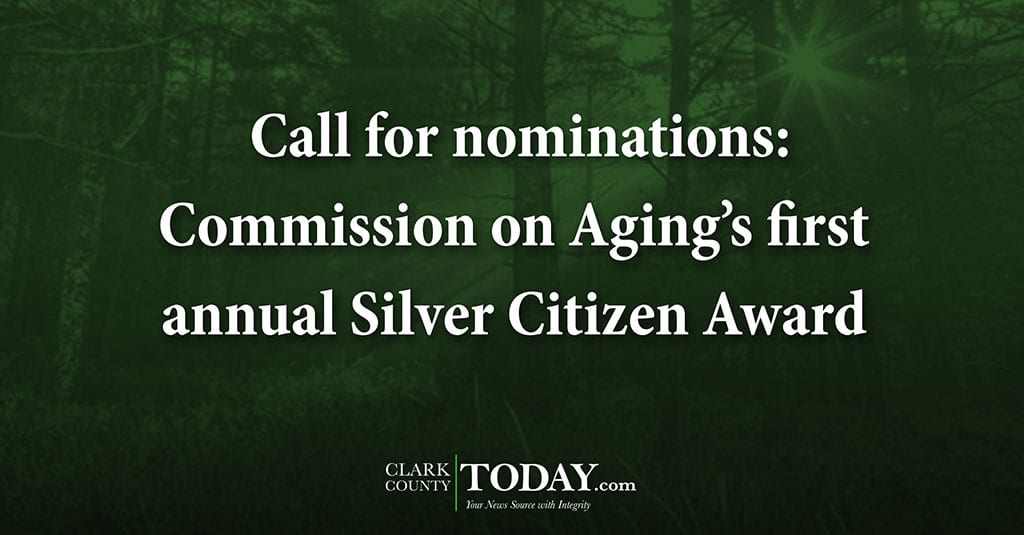 All nominations must be received no later than 5 pm, Thu., Feb. 13, 2020. Award criteria and nomination forms can be found on the Commission on Aging’s webpage at www.clark.wa.gov/aging.