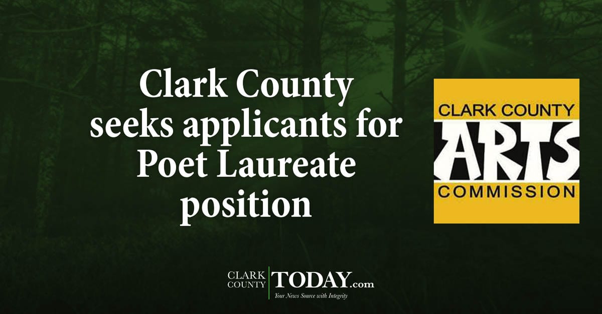VANCOUVER – The Clark County Arts Commission is seeking applicants for Clark County Poet Laureate. The position is for two years beginning April 15, 2021.