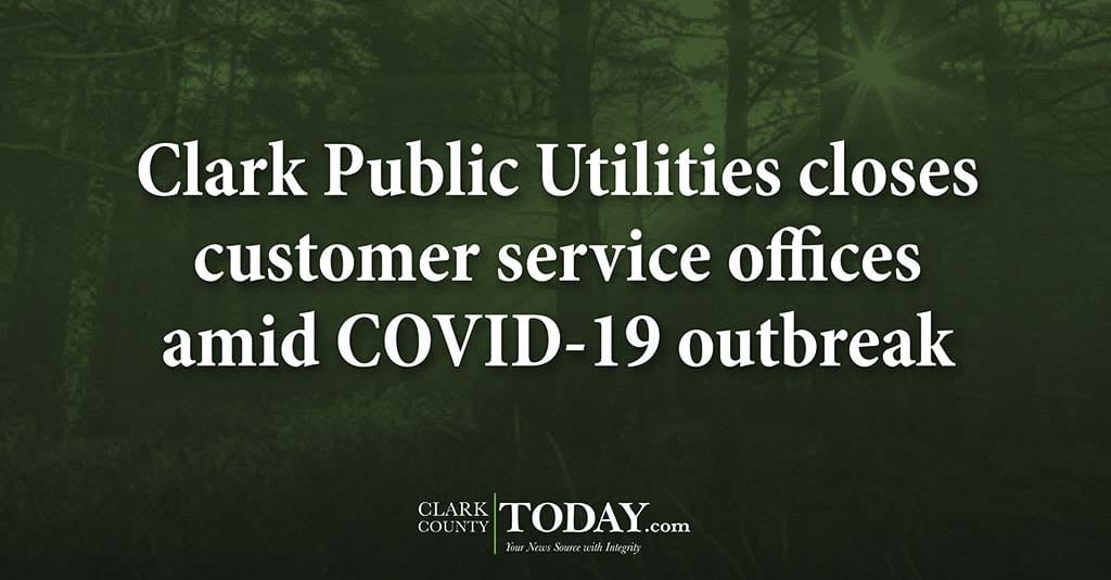 VANCOUVER — In order to protect the health and safety of its employees and customers, Clark Public Utilities is temporarily suspending in-person customer service at both its Electric Center and Operations Center locations, beginning Tue., March 17.