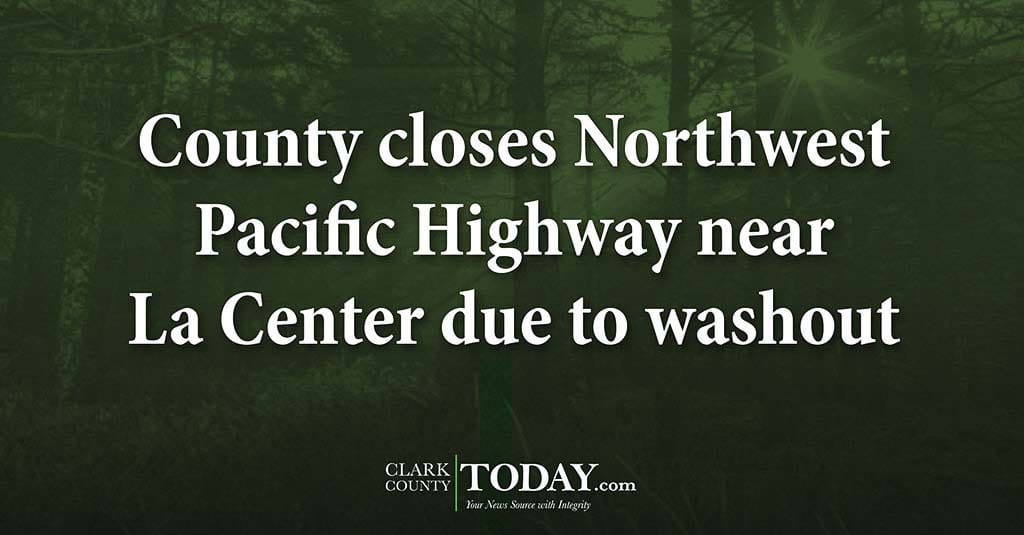 VANCOUVER – Recent rain and snow has triggered a road washout on Northwest Pacific Highway northwest of La Center.