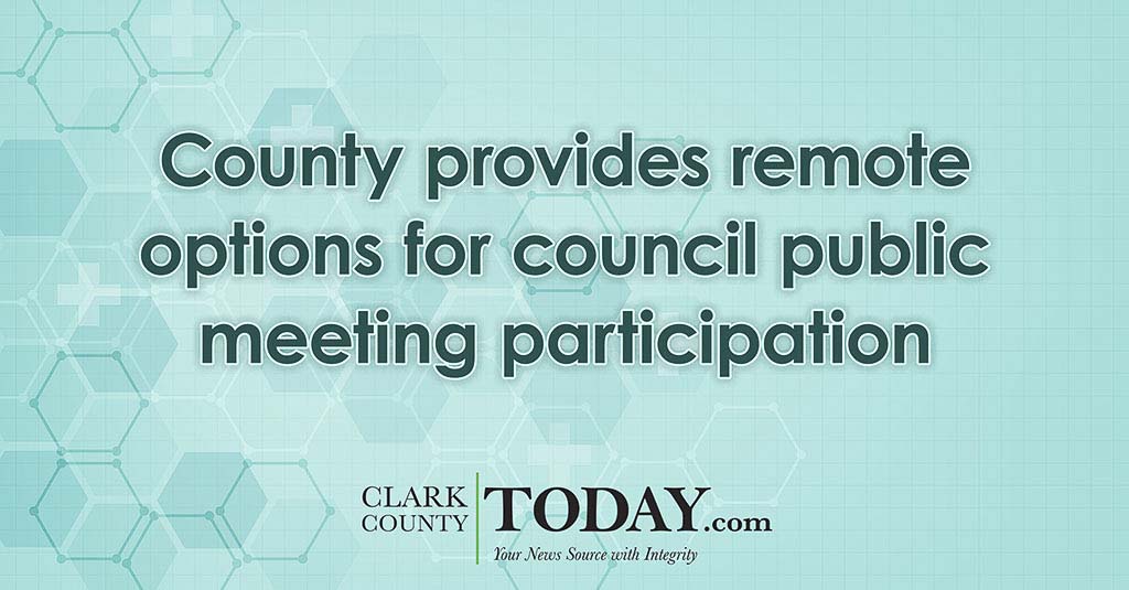 VANCOUVER – In keeping with the social distancing protocols in place to slow the spread of the COVID-19 virus, the Clark County Council is providing several options for residents to remotely participate in its public meetings. As announced earlier, county council public meetings are currently physically closed to the public.