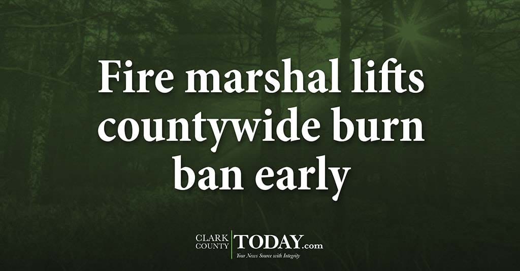 VANCOUVER — An abundance of rain and cooler temperatures have prompted Clark County Fire Marshal Jon Dunaway to lift the ban on outdoor debris burning in unincorporated Clark County, effective 8 a.m. Fri., Sept. 20.
