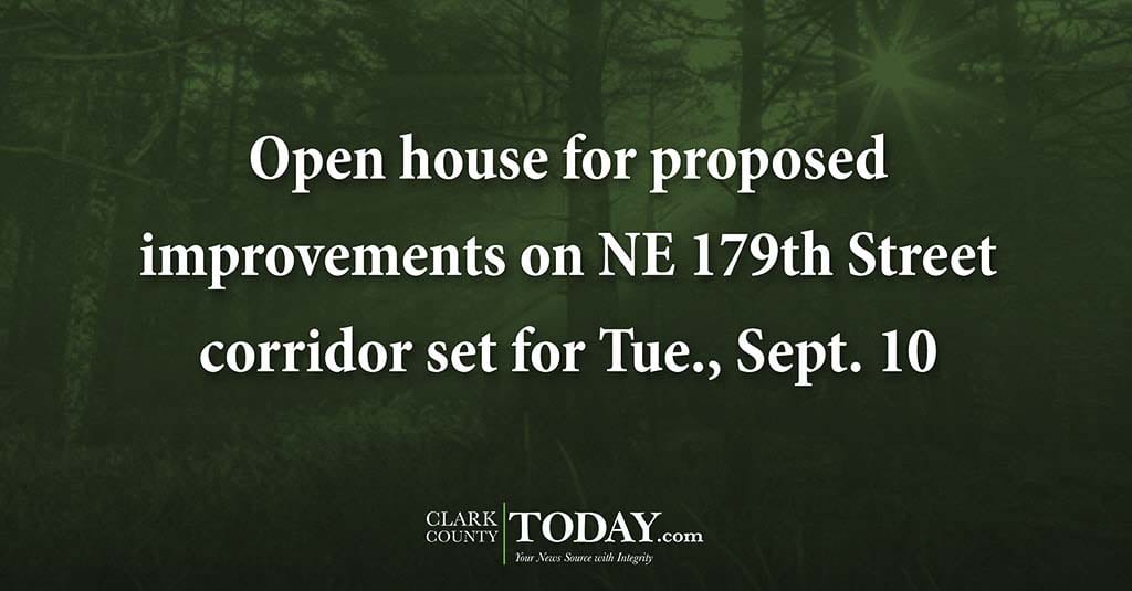 VANCOUVER — Members of the public are invited to come learn about a series of proposed improvement projects on the Northeast 179th Street corridor during an open house next week.
