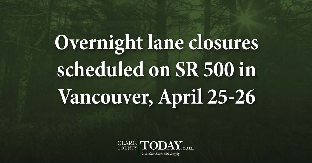 Beginning Thu., April 25, contractor crews working for the Washington State Department of Transportation will close a single lane in both directions of SR 500 between St. Johns Boulevard and Northeast 54th Avenue, to install custom median barrier between the eastbound and westbound lanes of the highway.