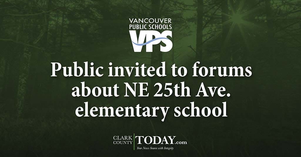 VANCOUVER — Vancouver Public Schools will hold public meetings at five elementary schools to give the community an opportunity to provide input on the construction of a new elementary school. The elementary school, planned to be built at NE 25th Avenue south of 88th Street, was among the list of schools to be built, replaced and upgraded with funding from the February 2017 bond measure.