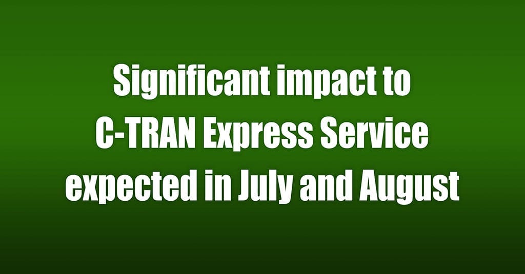 VANCOUVER — A series of long-term ramp closures at the Interstate 5/Interstate 84 interchange in Portland this summer is expected to significantly impact C-TRAN’s Express service to downtown Portland. Major gridlock is possible, and riders should be prepared for delays and plan for extra time.