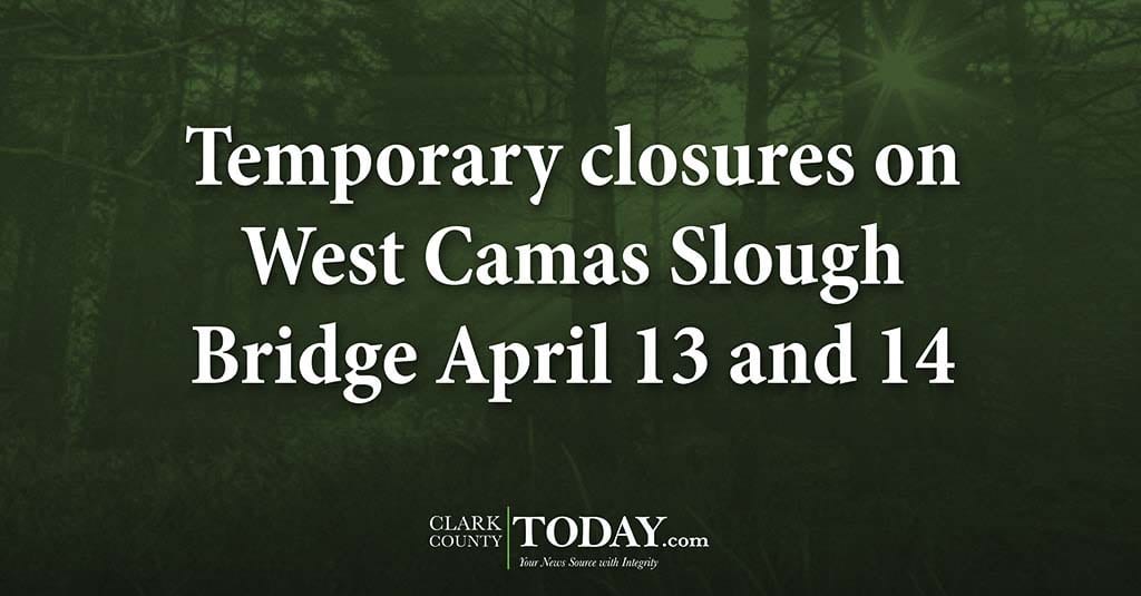 CAMAS — Travelers who use State Route 14 near Camas will encounter full eastbound closures of the West Camas Slough Bridge April 13-14 for routine bridge inspection work.