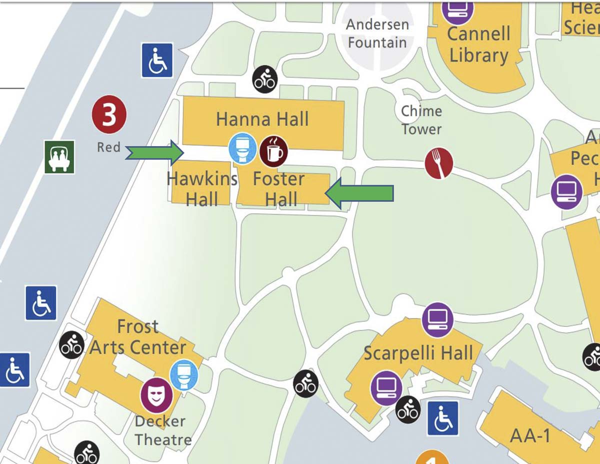 - ADA access to Foster Auditorium is available via the north entrance of Hannah Hall.