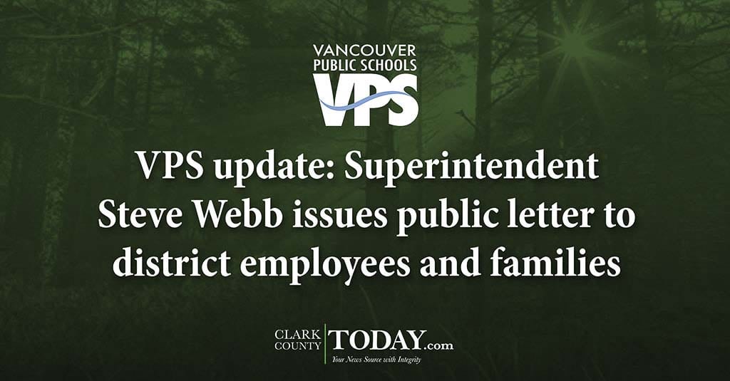 VANCOUVER — Vancouver Public Schools Superintendent Steve Webb issued an open letter to his district’s employees and families Tuesday in response to the coronavirus pandemic:
