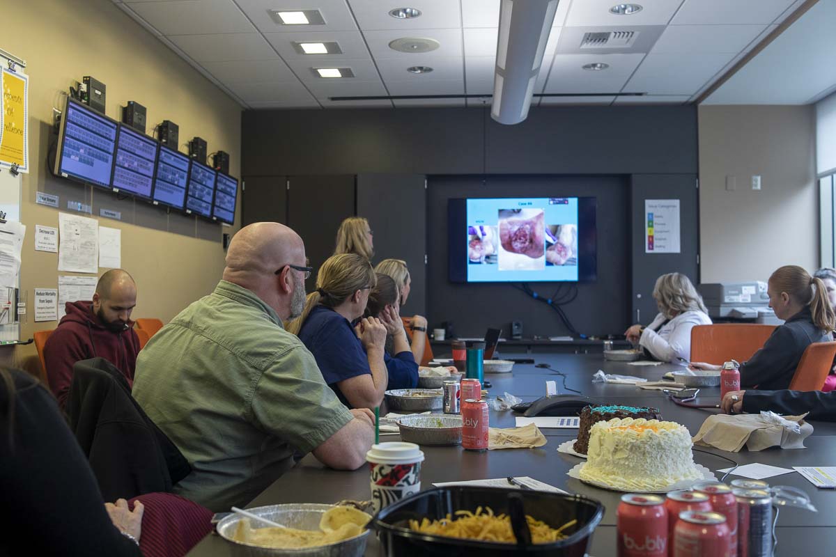 VANCOUVER — In a nondescript conference room at PeaceHealth Southwest Medical Center in Vancouver, a group of doctors, nurses, and other medical professionals eat a catered lunch and discuss cases. On a projector screen, images of badly infected limbs flash by.