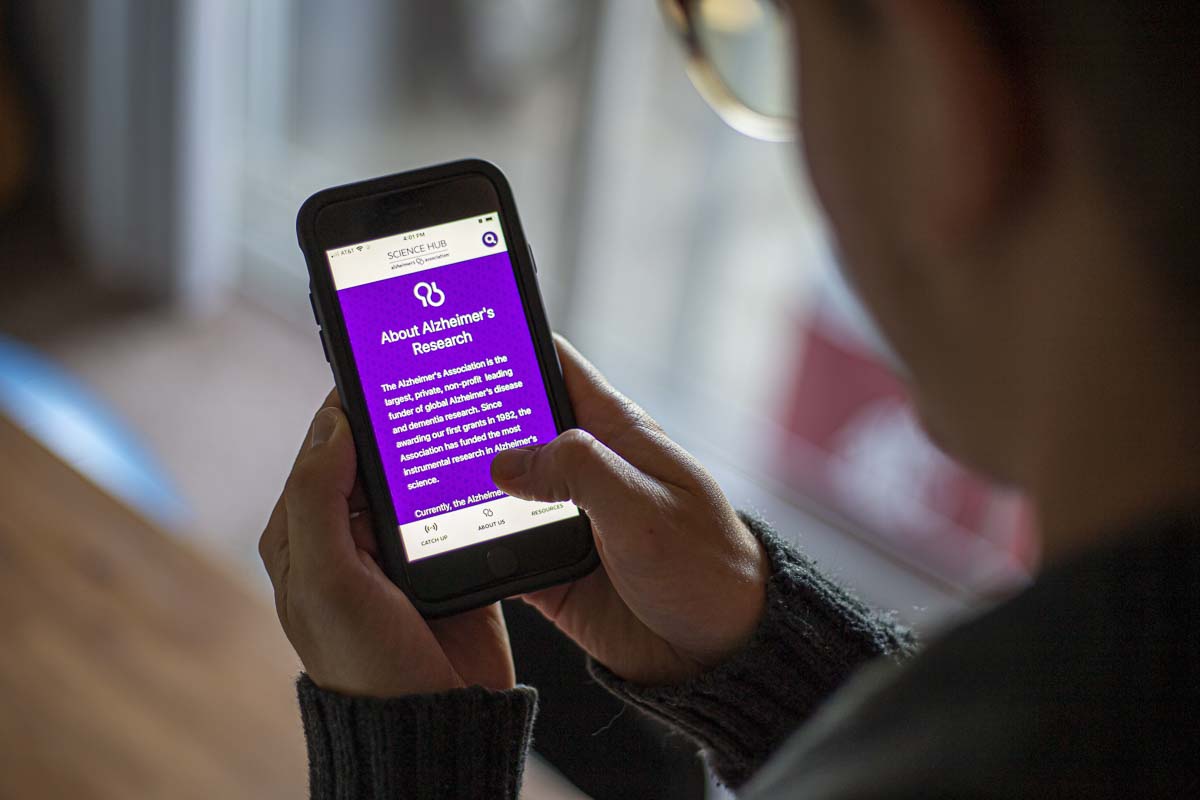 “A really cool thing that we have now is the Alzheimer’s Association science hub app. So anyone with an iPhone or an Android can download it, it’s totally free,” Rowell said. “I actually have recommended this to my parents, because as you can imagine, anytime there’s anything in the news, or they see something on Facebook about Alzheimer’s, my mom calls me and asks me if it’s real, because there’s a ton of junk science out there.”