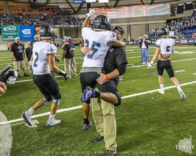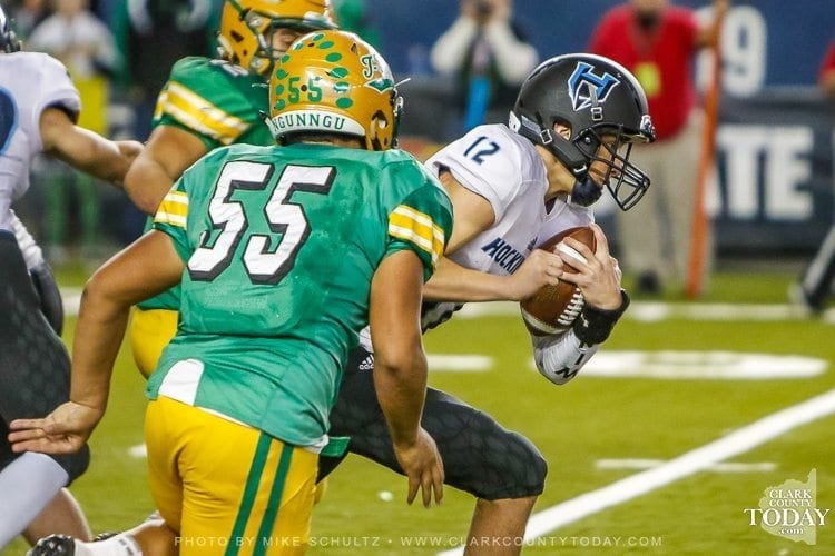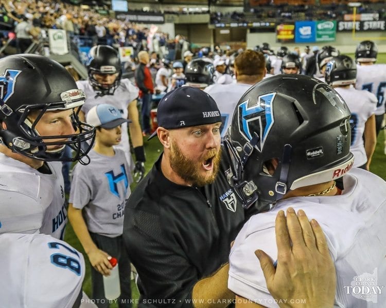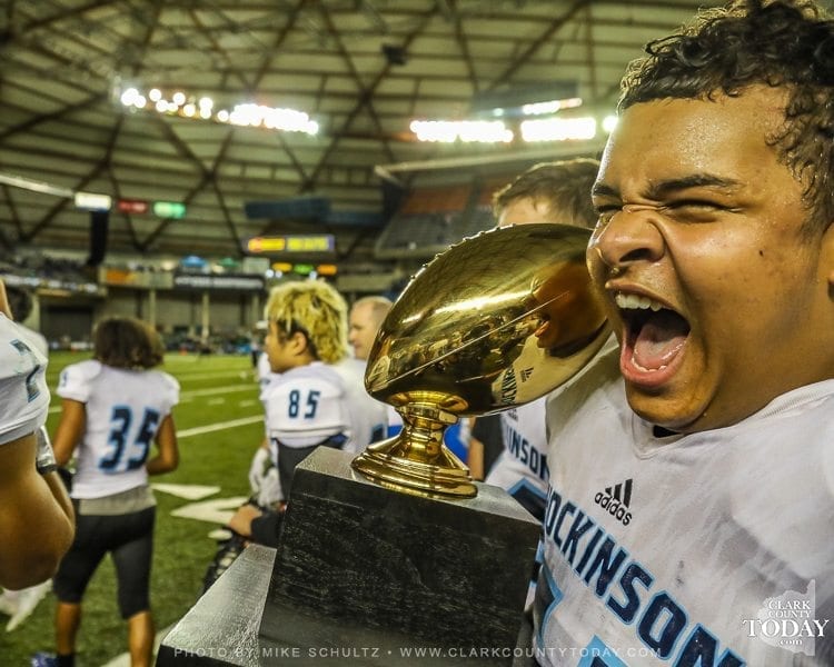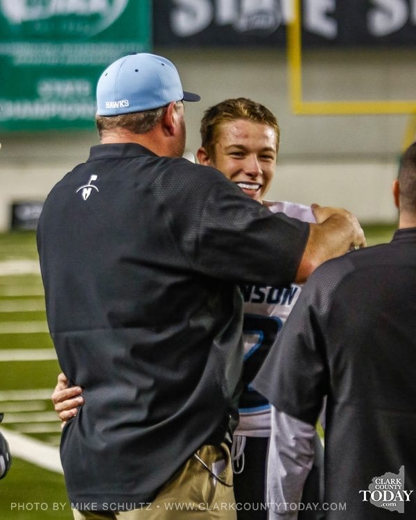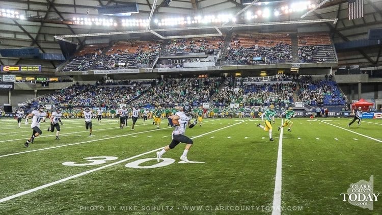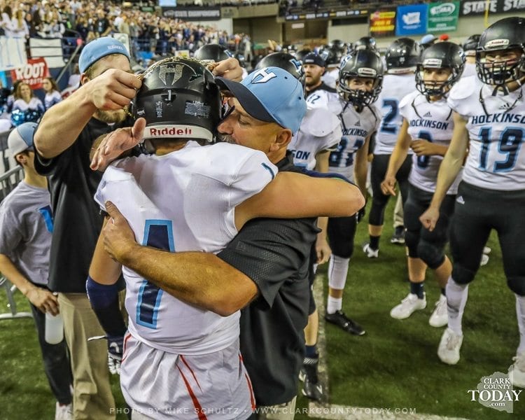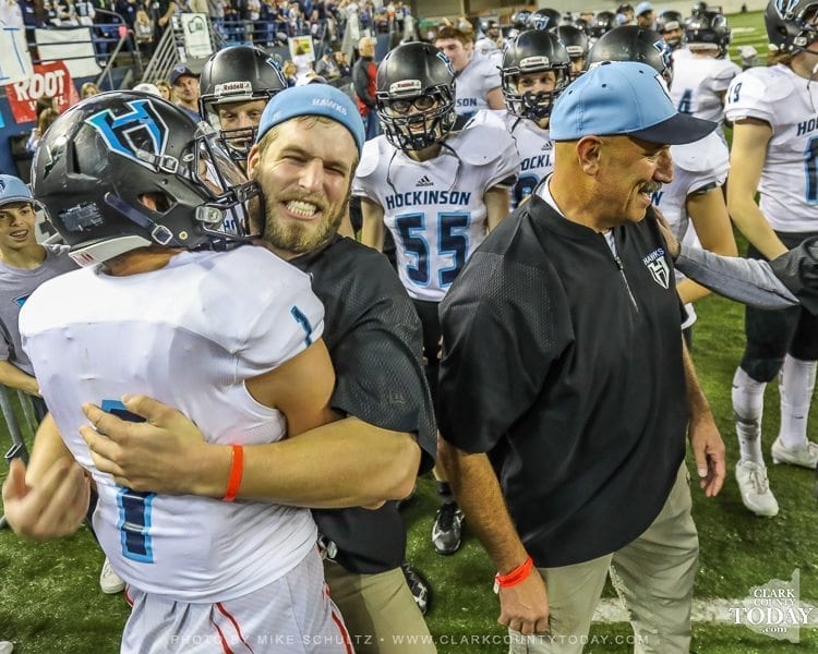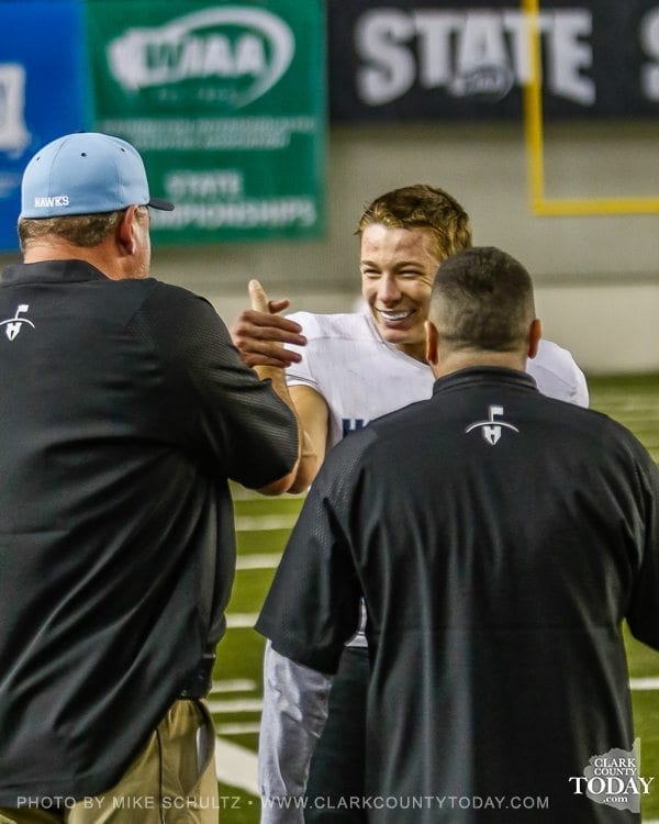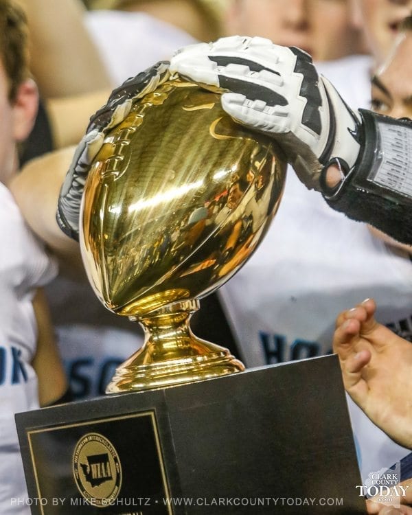 ClarkCountyToday.com Photographer Mike Schultz offers these images from Hockinson’s victory in the Class 2A high school state football championship game at the Tacoma Dome. Hockinson defeated Tumwater 35-22 to claim its first state football championship in the program’s history. The Hawks finished the season with a perfect 14-0 record.