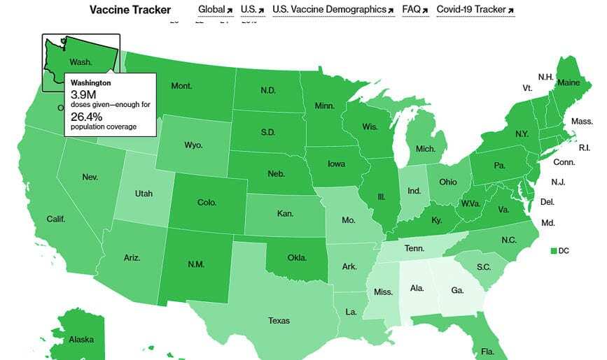 Bloomberg reports that the U.S. leads the world in total vaccines administered. Drugmakers have promised to deliver enough shots to fully vaccinate 130 million Americans by the end of March and 300 million people by the end of May. That would be more than enough for every adult. Clinical studies in children are presently underway.