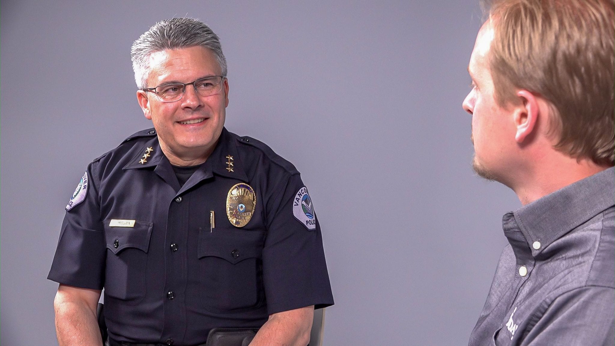 Reporter Chris Brown asked Chief McElvain about the recent officer involved shootings with Vancouver Police Officers, potential implementation of body-worn cameras, hiring demands for the department, and homelessness in Vancouver.