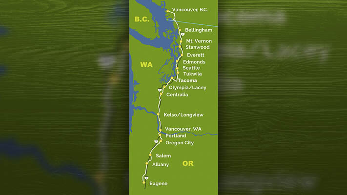 Dec. 11 also brings changes to the existing schedules. The northbound morning train from Eugene will leave later in the morning and allow for continuous travel on the same train all the way to Seattle. Later morning departures also will occur on trains leaving in both directions between Seattle and Vancouver, British Columbia. Afternoon trains will depart earlier from Canada to Seattle and from Portland to Seattle to Vancouver.