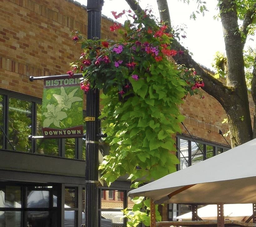 “The beautiful hanging baskets in downtown Camas make such a difference in our downtown!” says Caroline Mercury, DCA board president. “They are part of the aesthetic that people enjoy when they are here. Along with street plantings, tree and roofline lighting, and public art, the full and colorful baskets are appreciated by visitors and residents alike. We are grateful for the support for the flower baskets each year.”