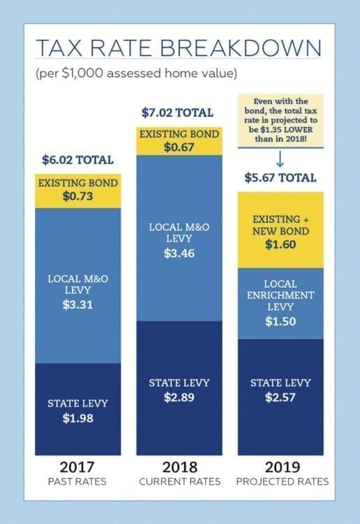 The district is hoping voters will look ahead to next year, when property taxes are forecast to go down. The legislature also approved one-time property tax relief for next year.
