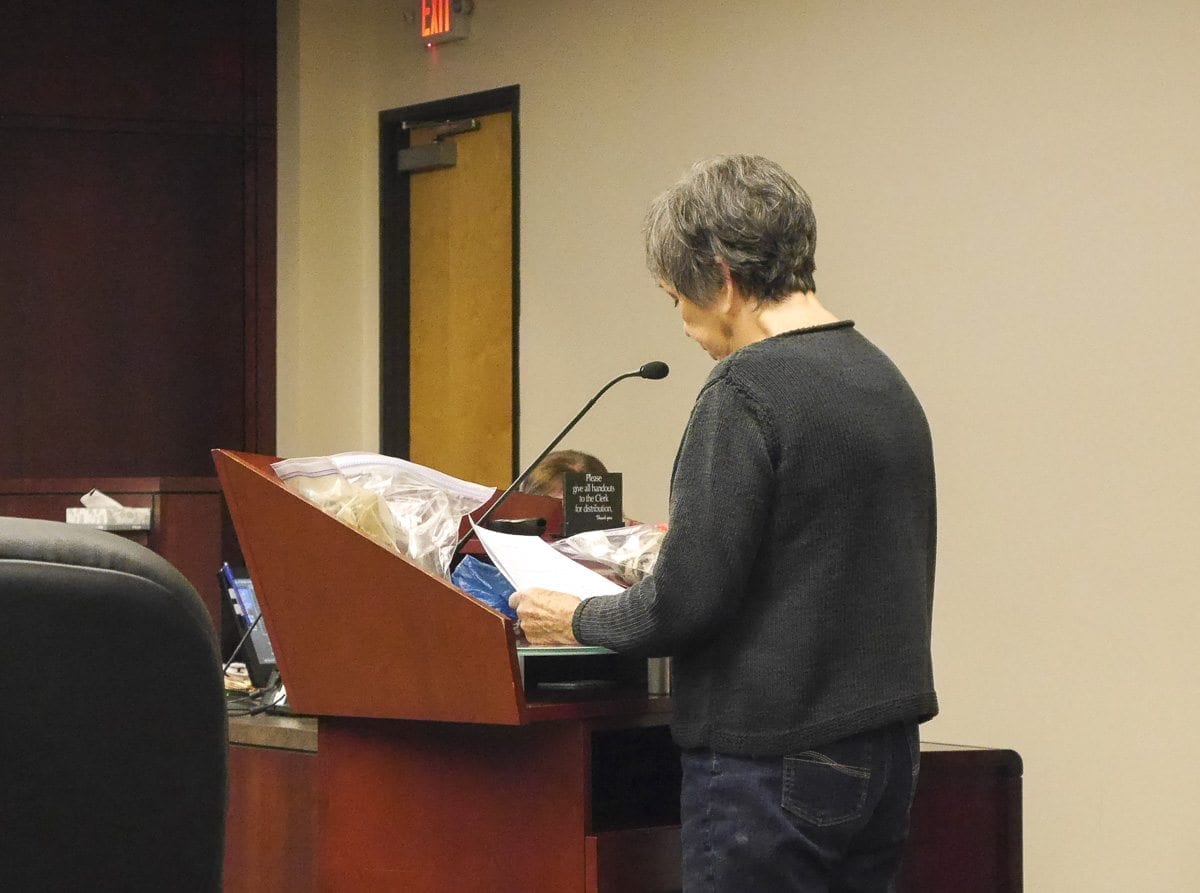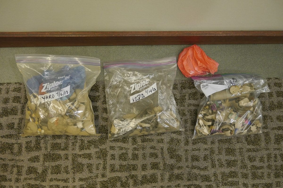 During public comments, Duke brought out a bag filled with bits of fireworks debris she’d collected in the Sixth Street Station home she and her husband had purchased in 2012.