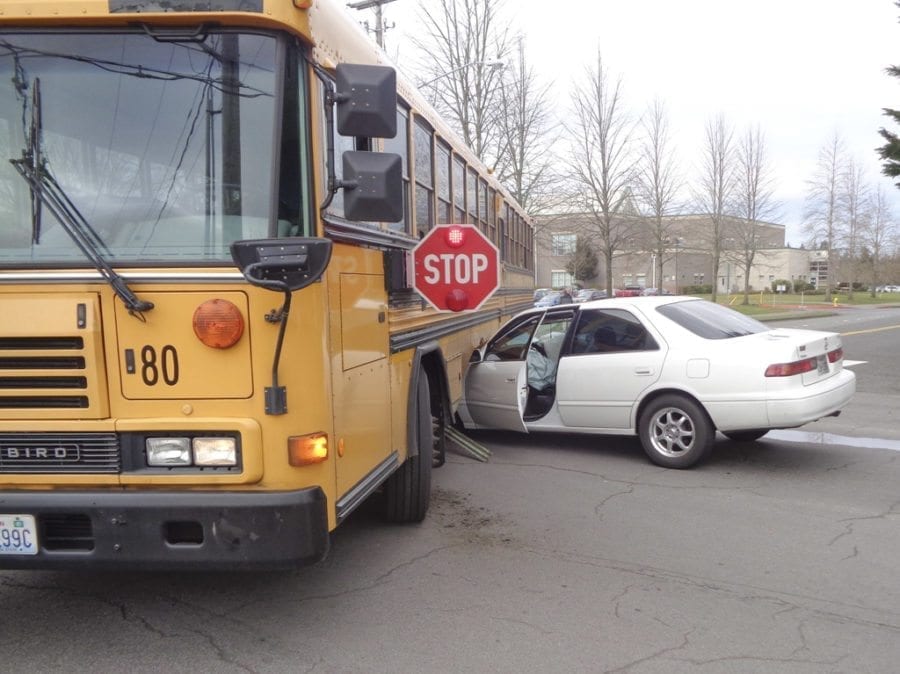 VANCOUVER — A school bus carrying no students collided with a car Tuesday afternoon at an intersection near the Skyview High School campus.