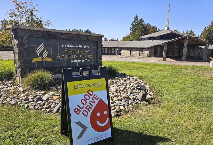 Bloodworks Northwest is teaming up with Hockinson Heights Seventh-Day Adventist Church for a blood drive in Hockinson on Wednesday, Sept. 20, from 9 a.m. to 3 p.m.. The church is also asking donors to bring canned foods.