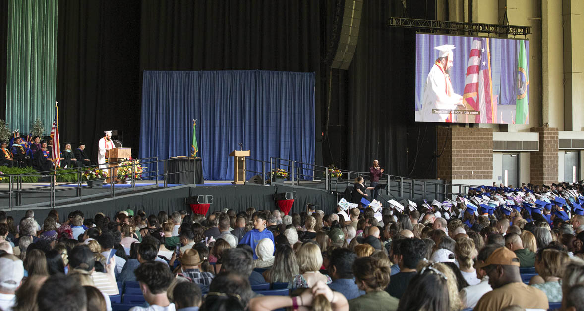 VANCOUVER – Clark College honored its 88th graduating class at the 2024 Clark College Commencement ceremony on Thursday evening, June 20, at the RV Inn Style Resorts Amphitheater. Over 640 graduates and their guests gathered with college faculty and staff to celebrate their achievements. This auspicious ceremony honored students graduating with their bachelor’s or associate degrees, and those earning certificates, high school diplomas, and/or GED completion.