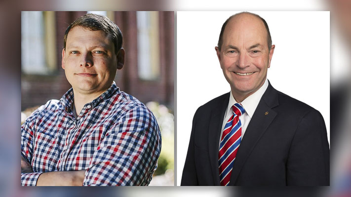 Auditor Greg Kimsey and opponent Brett Simpson each participate in Monday forum hosted by League of Women Voters of Clark County