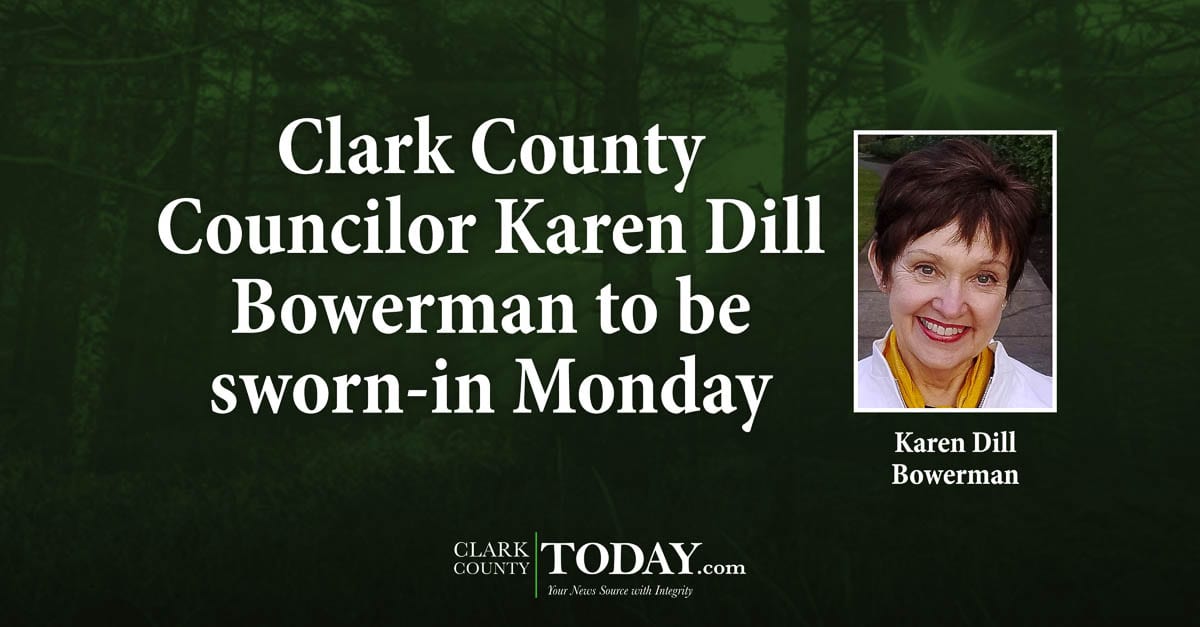 VANCOUVER – Councilor-elect Karen Dill Bowerman is scheduled to be sworn in as a member of the Clark County Council at 10 a.m. Mon., Dec. 28.