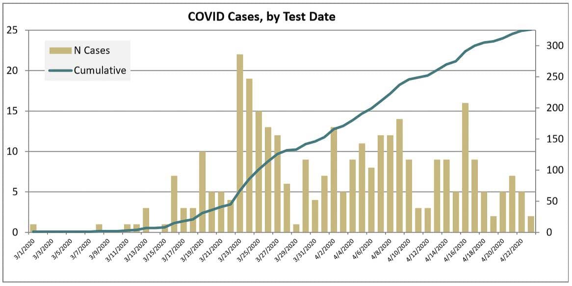 Out of the 19 deaths blamed on COVID-19 so far in the county, 12 have involved someone over the age of 80. Only one person younger than 60 has died.