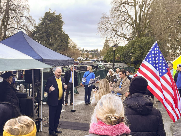 Monday (Jan. 9) was the first day of the 2023 legislative session in Washington state. Before the lawmakers raised their right hands and swore on oath to uphold the state and federal Constitutions, a group gathered at the bottom of the steps of the Capitol to make sure those lawmakers knew how their constituents felt about potential future mandates and lockdowns.