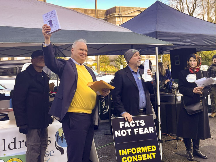 Informed Choice Washington hosted the rally at which citizens let lawmakers know how they feel about potential future mandates and lockdowns