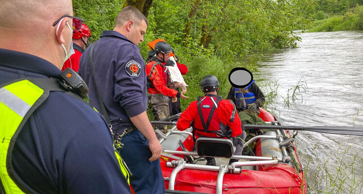 Rescue swimmers from Tower 21 and Engine 15-1 made access to the water and conducted a waterside search of the river. Technical Rescue Team members from the Vancouver Fire Department and Clark County Fire District 6 arrived on the scene and launched Raft 5 alongside Raft 23 for continued search.