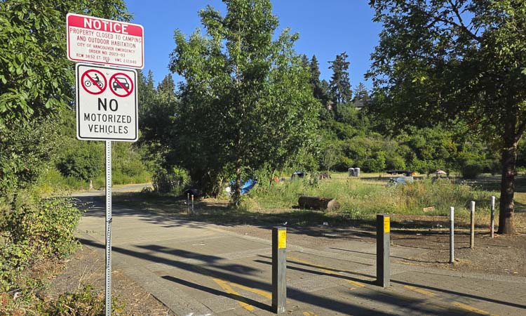 Homeless camps were near Andresen Road along the trail for a long time, but earlier this month the city gave notice to those living there that they would have to depart by July 23, and Clark County Today confirmed that there were no tents set up Monday morning, July 28