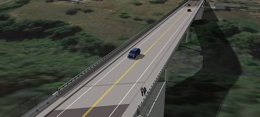 A new two-lane steel and concrete bridge will span the current gap at Whipple Creek. The bridge will be nearly 48 feet above Whipple Creek and will be built to last 75-100 years.