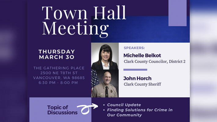 Crime has been in the news often in Hazel Dell and other District 2 areas of Clark County and Councilor Michelle Belkot is inviting area citizens to attend her first town hall to talk about it. Belkot has invited Clark County Sheriff John Horch to share with the public about recent efforts and the best ways to reduce crime.