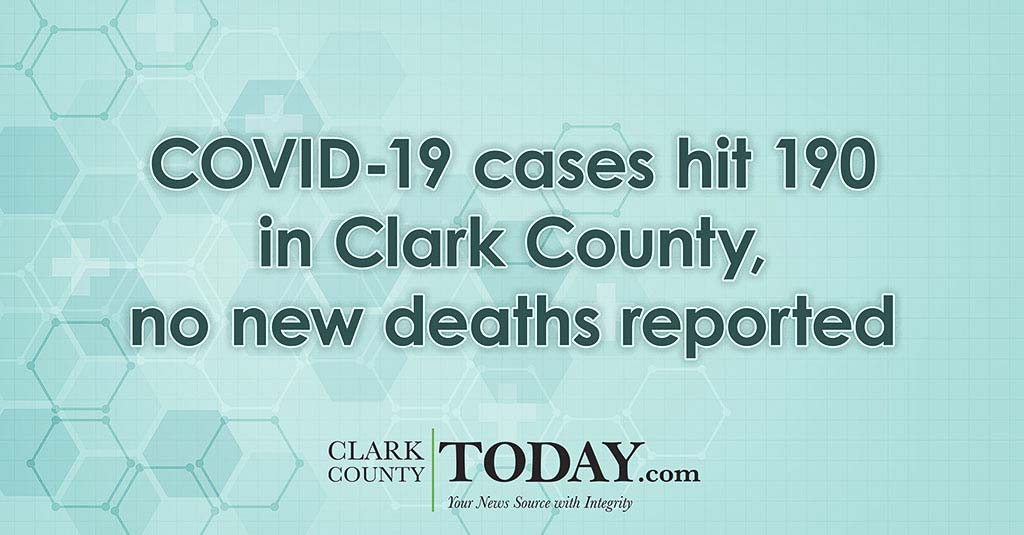 CLARK COUNTY — Clark County’s total of confirmed COVID-19 cases rose slightly on Wednesday, increasing to 190 since the outbreak began, an increase of five since Tuesday.