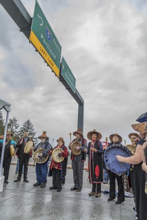 LA CENTER — Leaders and members of the Cowlitz Indian Tribe joined other area residents Tuesday at dedication and blessing of the newInterstate 5, Exit 16 interchange, which opened hours later.