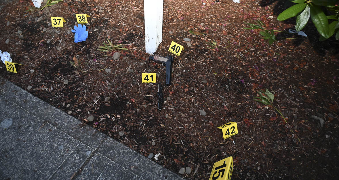 Investigators located both objects at the scene and determined that the firearm was a modified replica airsoft gun. The item appears to be a replica Colt 1911 airsoft gun.