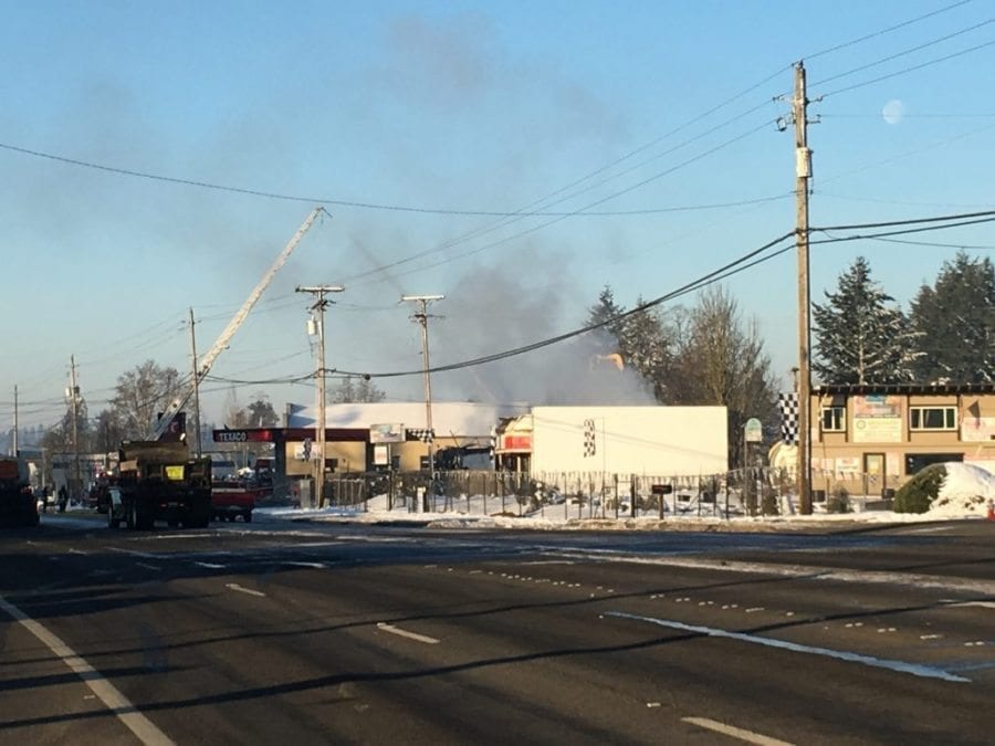 A 3 alarm fire destroyed a commercial building in Vancouver, WA early Sunday morning. At approximately 5:40 a.m. on Sunday, January 15 the Vancouver Fire Department was dispatched to a commercial structure fire at 134th Avenue and Fourth Plain Blvd. in Vancouver, WA. Upon arrival Engine 4 saw a large volume of fire coming from the structure and immediately sounded a 2nd alarm. Due to the large volume of fire the initial attack was defensive, meaning that the fire was attacked from the exterior of the building. A 3rd alarm was sounded at 0611, resulting in a total of 36 personnel from the VFD and Clark County Fire District 3. The fire did not spread to any other buildings. The incident commander called the fire under control at 7:11 a.m.. The cause of the fire is currently under investigation by the office of the Clark County Fire Marshal.