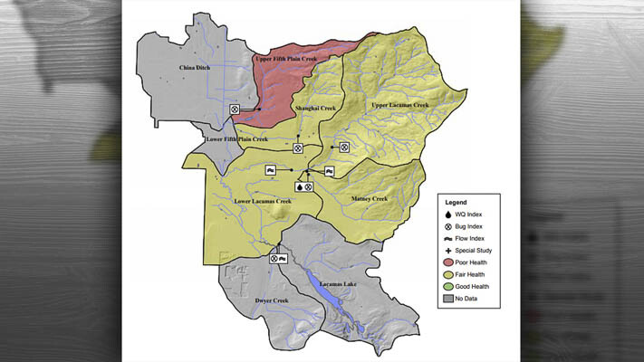 There is roughly 157,000 acre feet of water flowing into the lake a year, approximately 21 times lake capacity. Clark County recently concluded its own study of the watershed. It found the highest levels of phosphorus came from China Ditch and Lower 5th Plain Creek.