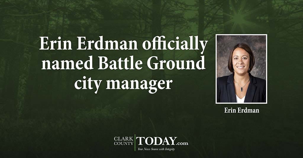 BATTLE GROUND — In a unanimous vote at their April 1 council meeting, members of the Battle Ground City Council took action to officially name Erin Erdman city manager. Erdman has served as interim city manager since October of last year.