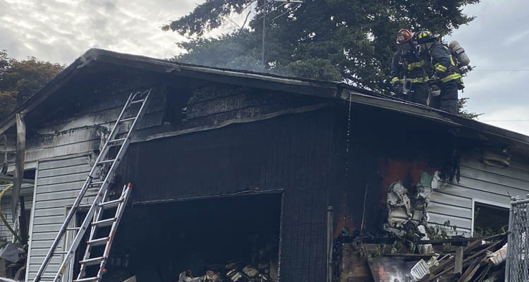 The first fire engine arrived at a small single-story residence with fire showing from the garage. Firefighters pulled hose lines to the garage and started fighting the fire from the outside while the second engine company made access through the front door. Once inside crews searched for any victims and ensured the fire did not spread to the main living space.