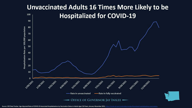 “Vaccination remains our most essential protection against severe illness and death from COVID-19. It’s also crucial to prevent our hospitals from being overwhelmed again,” Inslee said. “If you’ve been procrastinating, now is the time to get the shot.”