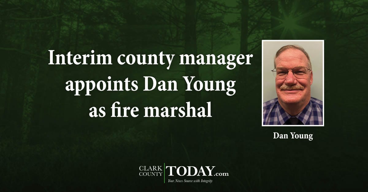 VANCOUVER – Interim Clark County Manager Kathleen Otto this week appointed Dan Young to serve as the county’s fire marshal. Young has been serving as interim fire marshal since October 2019.