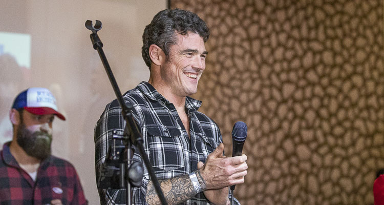 Joe Kent interacts with some of his supporters Tuesday night in Brush Prairie. Photo by Mike Schultz