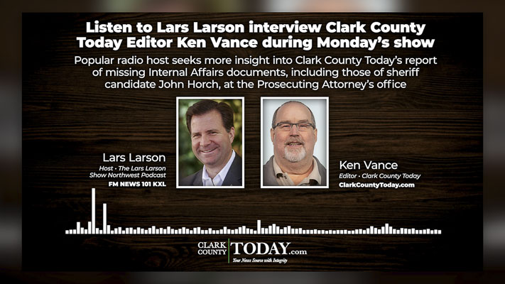 Clark County Today Editor Ken Vance was a guest on the Lars Larson Lars Larson Radio Show Monday to discuss Friday’s story about missing Internal Affairs documents at the Clark County Prosecuting Attorney’s Office.