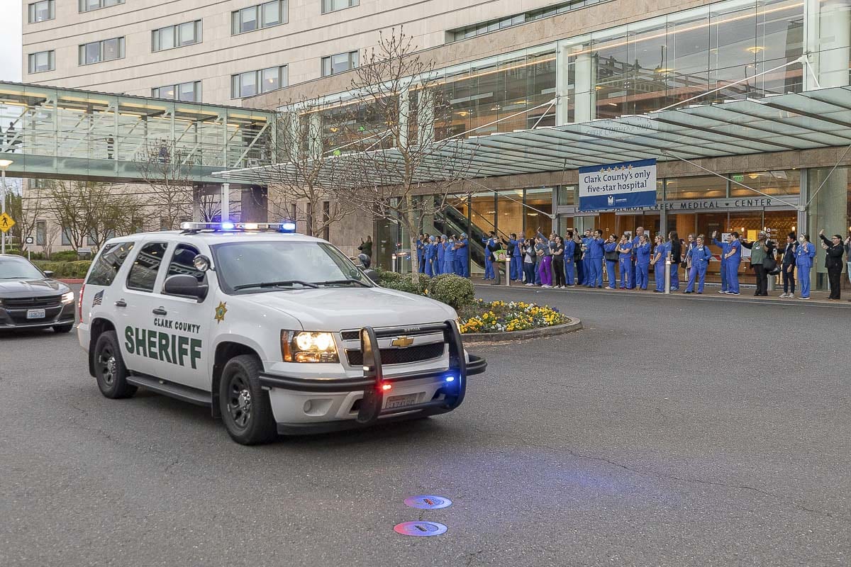 On Tuesday, (promptly at 3:30 p.m.) Kindness 911, in partnership with the Vancouver Police Department and other local law enforcement agencies will conduct a “Kindness Sting” at PeaceHealth Southwest. To comply with social distancing guidelines, they will drive around the medical campus with lights on conveying a thank you for a hero’s effort just like they did on Friday at Legacy Salmon Creek.