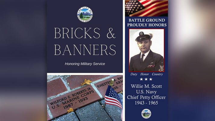 Detailed information about the banner program, including an order form and sample image is available on the city’s Bricks & Banners website page. The new banner program joins the existing Commemorative Brick program in which personalized, engraved bricks may be purchased for placement at the Battle Ground Veterans Memorial to honor any U.S. veteran.
