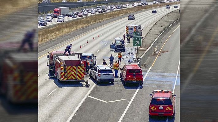 All lanes of southbound I-205 were closed for a period of time. The Washington State Patrol (WSP) and the Washington State Department of Transportation were on scene to provide traffic control.