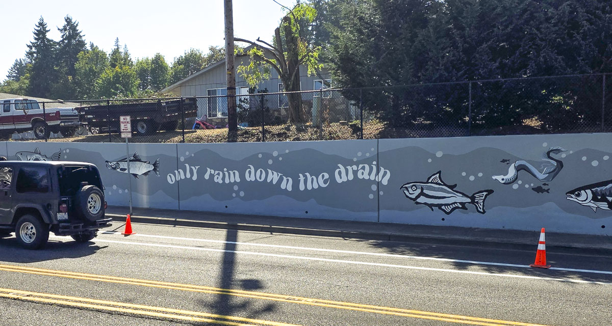 Beyond the dozens of fish on the mural, there are also a few phrases to remind passersby how important it is to protect waterways.