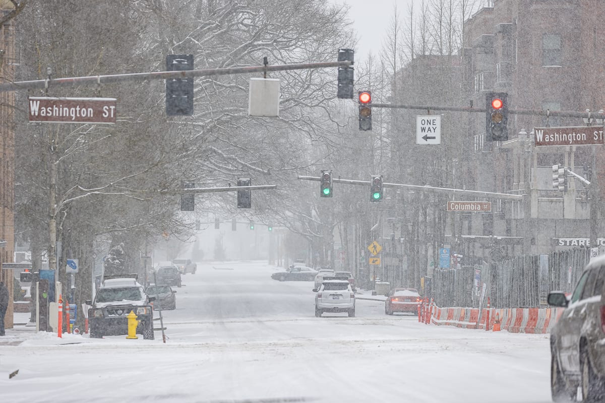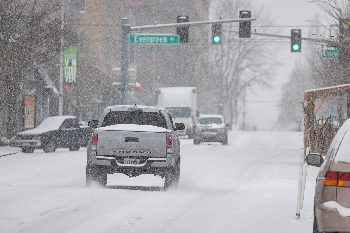 PHOTOS: Friday snow in Clark County Date: Friday, February 12, 2021 in: News share 0 0 Photographer Mike Schultz was in Downtown Vancouver Friday to capture images of the snow. Downtown Vancouver, Washington. Photos by Mike Schultz.